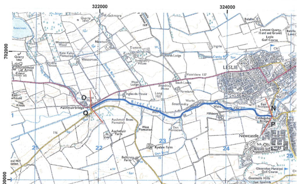 Both banks of the tributary of the said River Ore near Lochty Farm from points K and J to the Lochty Burn